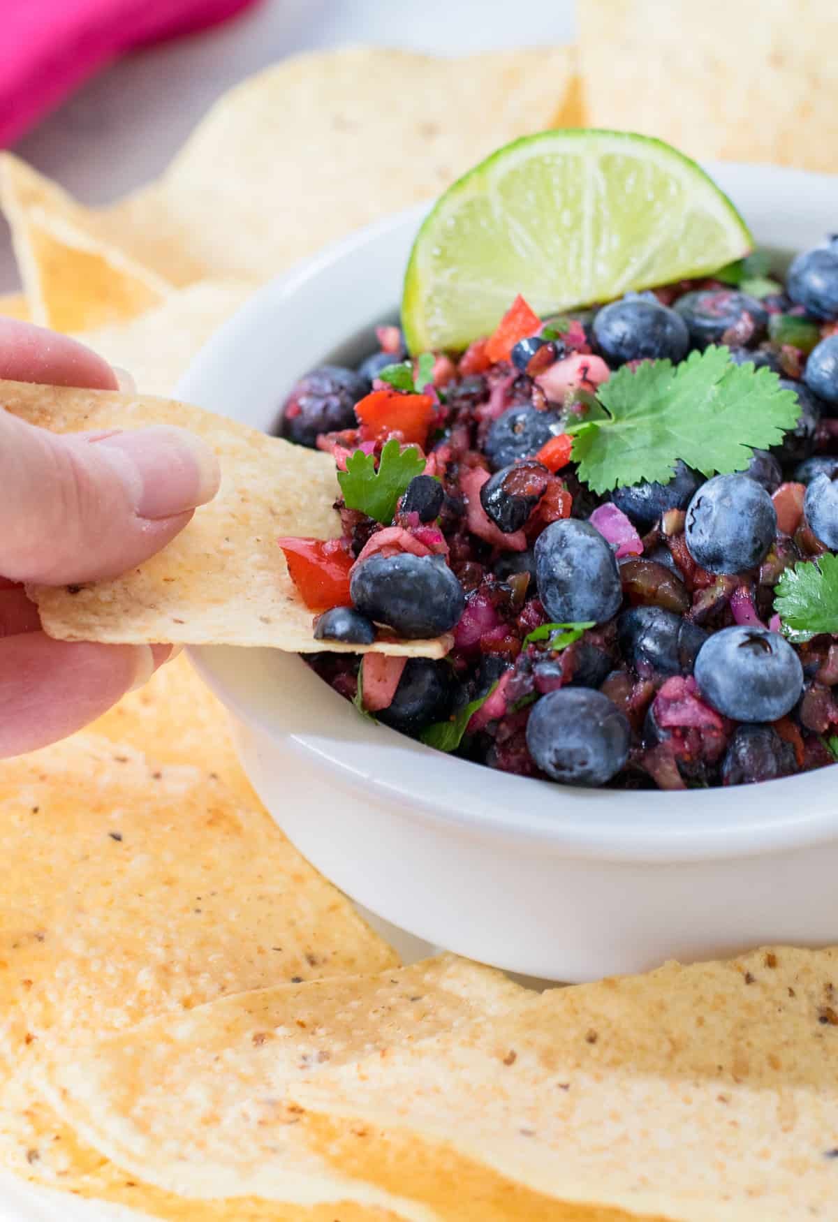 You can make this Fresh Blueberry Salsa in 15 minutes! It’s sweet, savory and delicious! Serve it with tortilla chips or over fish, chicken or pork.