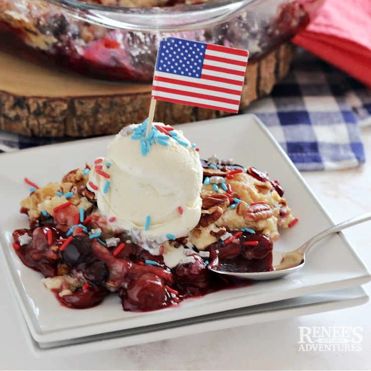 You don’t need a holiday like 4th of July or Memorial Day to enjoy this easy patriotic dessert. This Red, White, Blueberry Dump Cake Recipe is so easy to put together, bakes perfectly, and is delicious served warm with a scoop of vanilla ice cream!