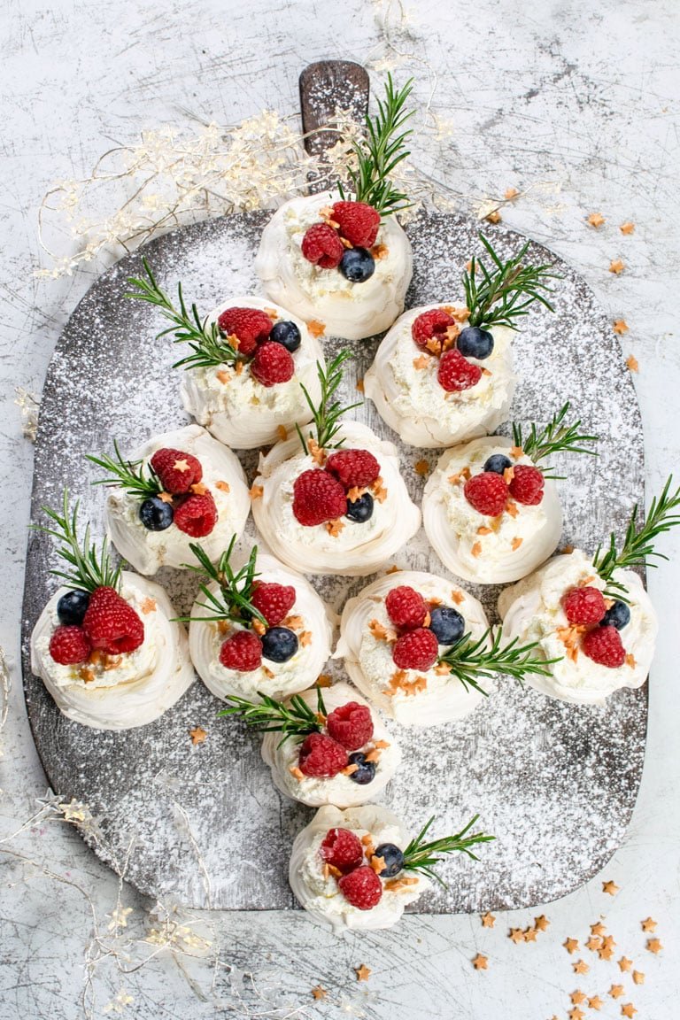 This vegan pavlova is shaped like a Christmas tree and makes a stunning holiday dessert.