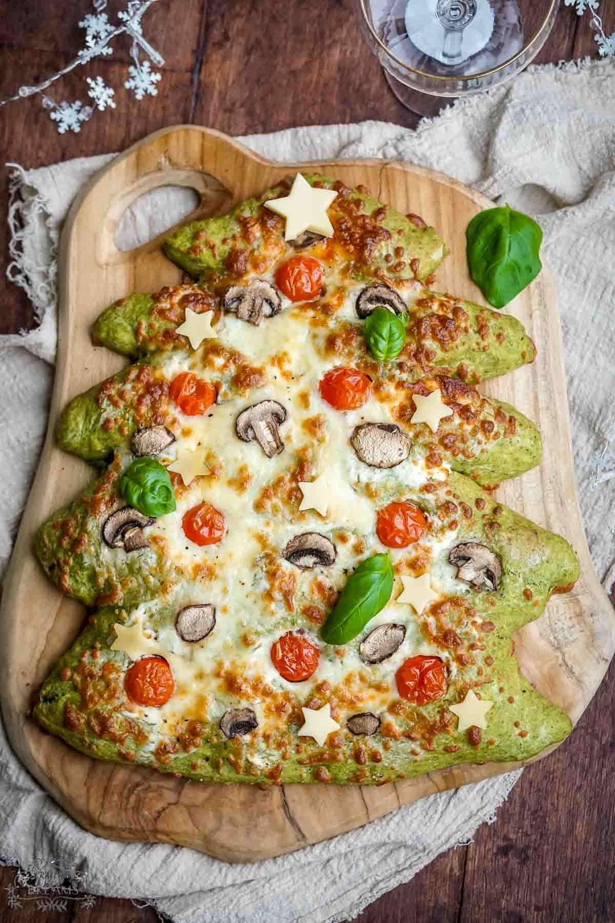 This festive pizza uses a spinach-infused crust shaped like a Christmas tree. It’s fun, colorful, and a great way to sneak extra greens into the holiday meal. You can top it with your favorite ingredients to match the season.