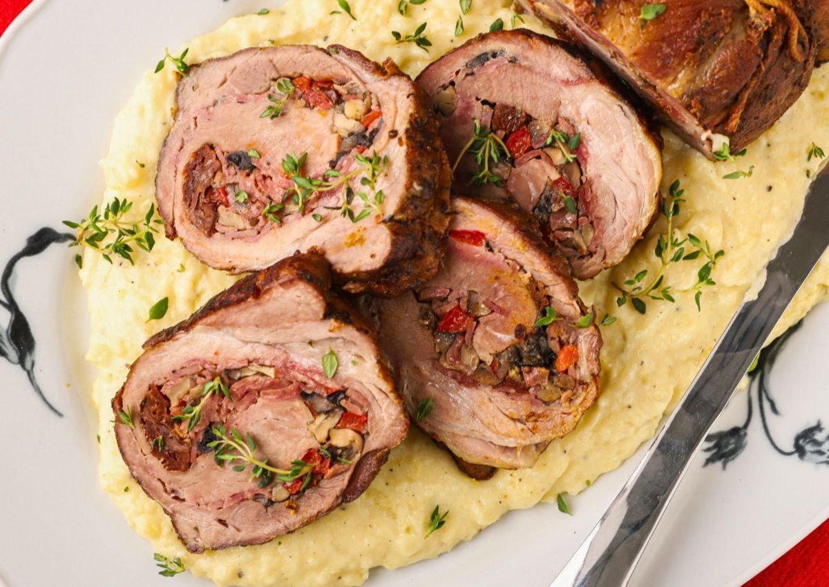 6. Stuffed Pork Loin with Bacon, Sun-Dried Tomatoes & Mushrooms