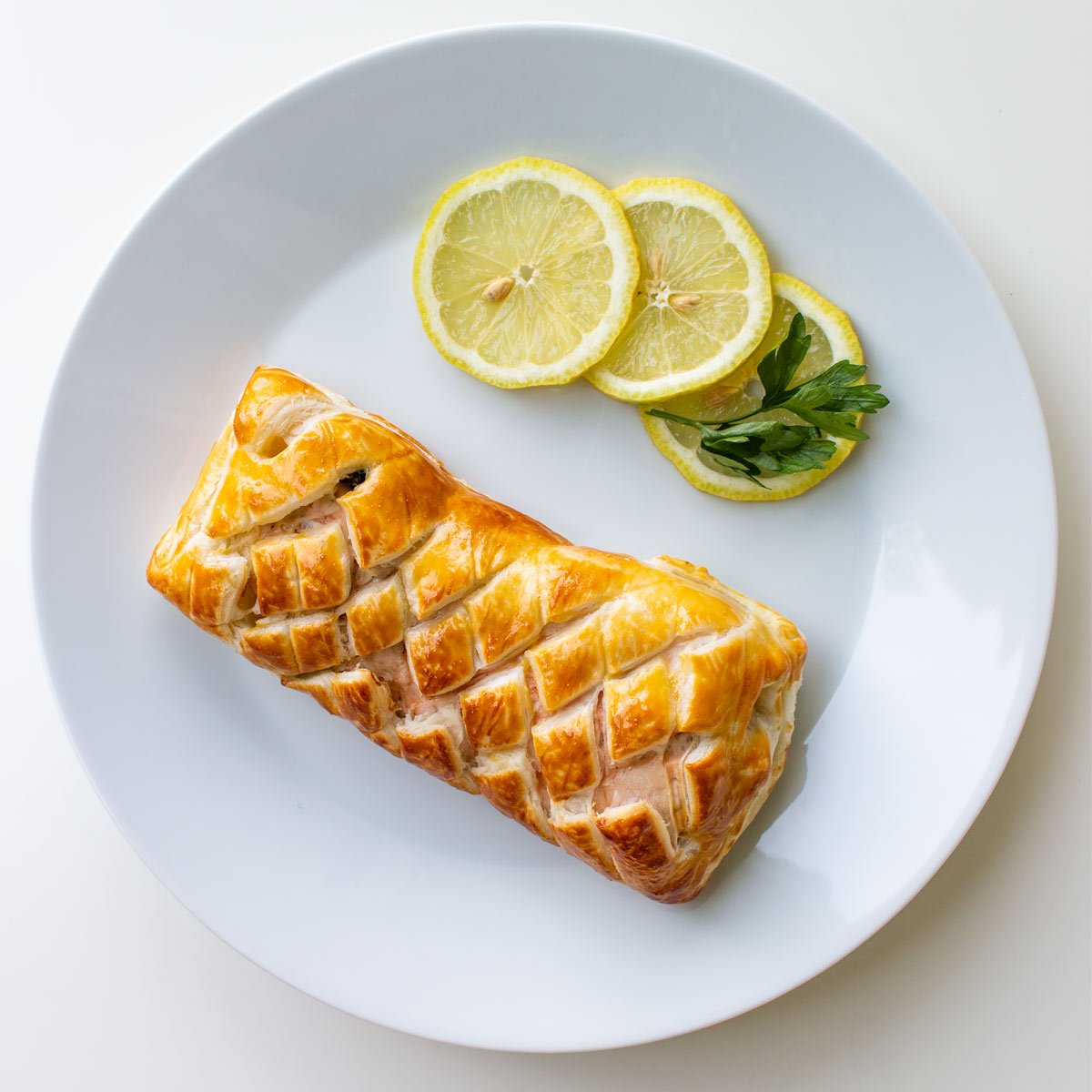 These personal-sized Salmon Wellingtons wrap tender salmon fillets in golden puff pastry. Each portion is elegant and easy to serve, making them perfect for holiday lunch plating. The dish balances buttery pastry with rich, flaky fish.