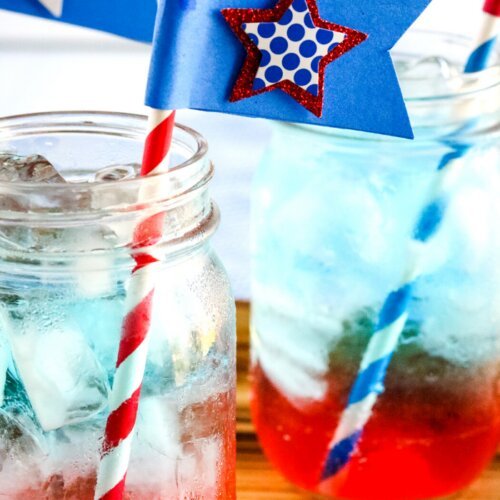 This Red, White & Blue Patriotic Mocktail is a fun and refreshing layered drink perfect for celebrating the 4th of July. Made with fruity juices and colorful sports drinks, it creates a stunning red, white, and blue effect in the glass.