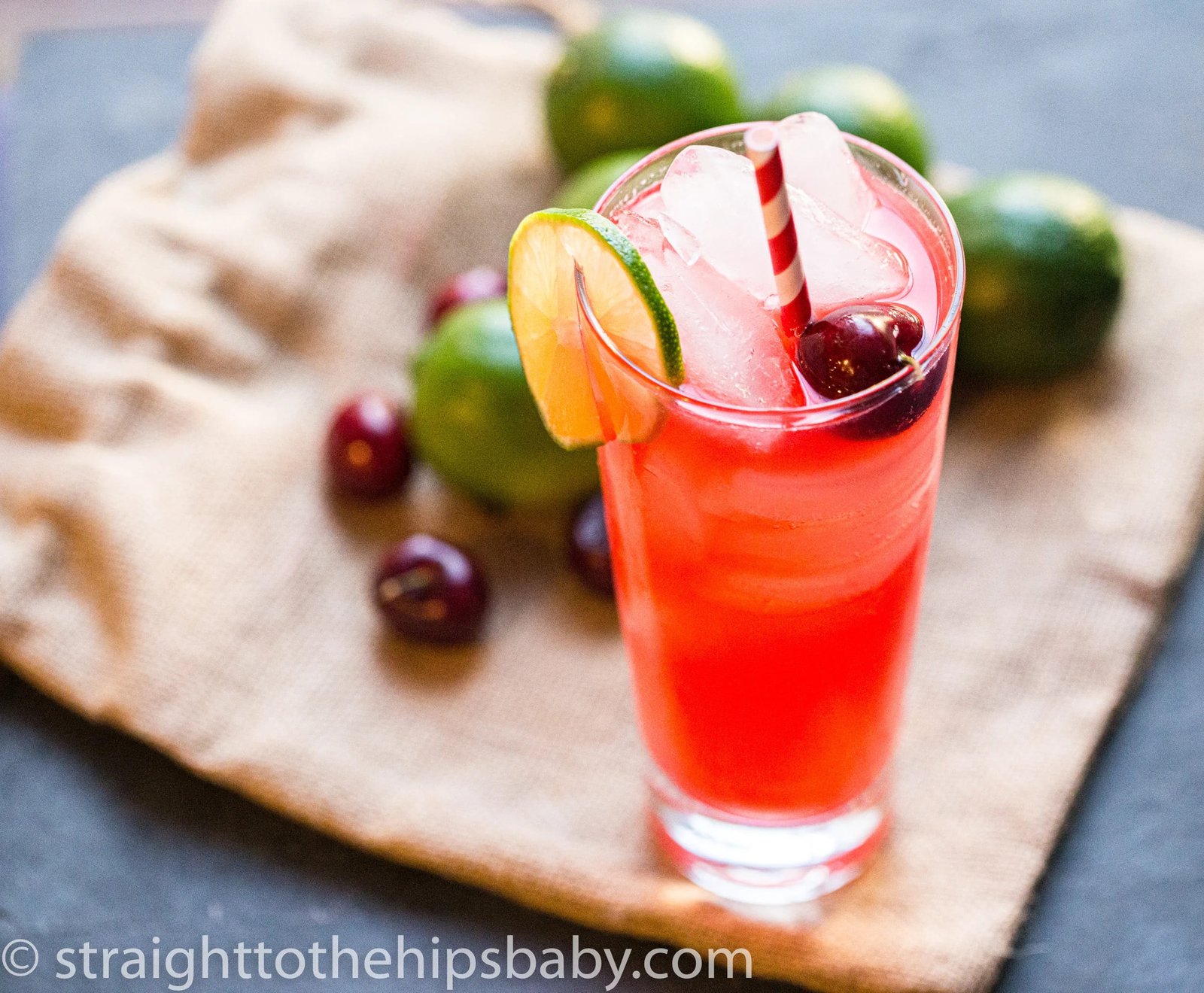 A homemade cherry simple syrup does the trick! Served over ice and garnished with a lime, this is a terrific alcohol free drink recipe for parties and casual gatherings!