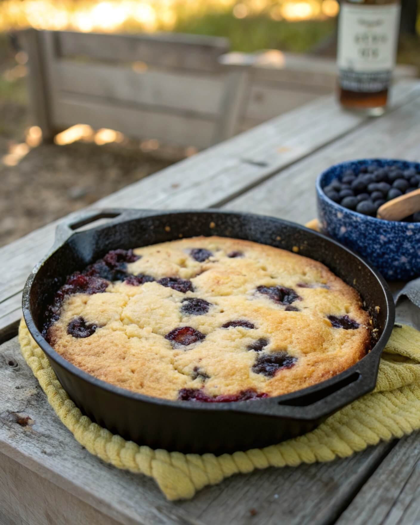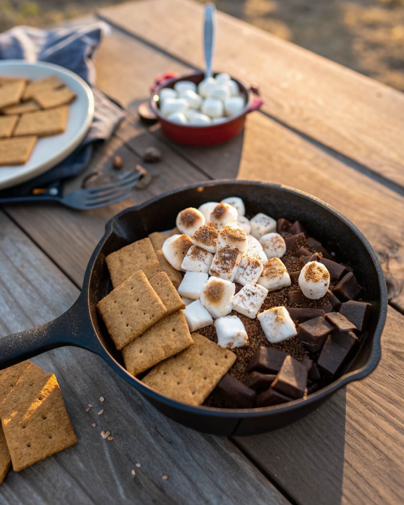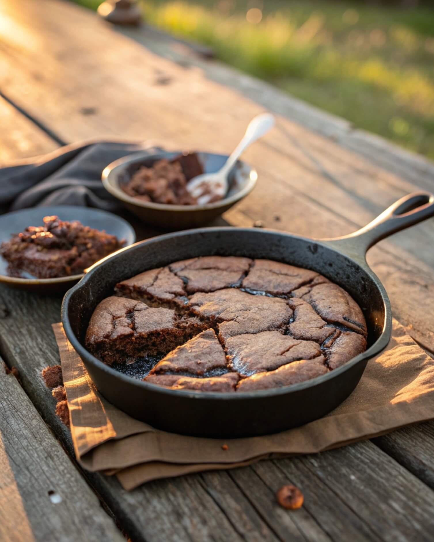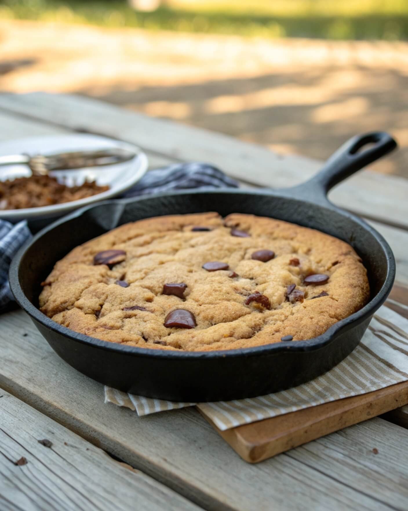 Using a cast iron skillet makes this dessert feel extra special. Serve warm with marshmallows or powdered sugar for an easy campfire treat.