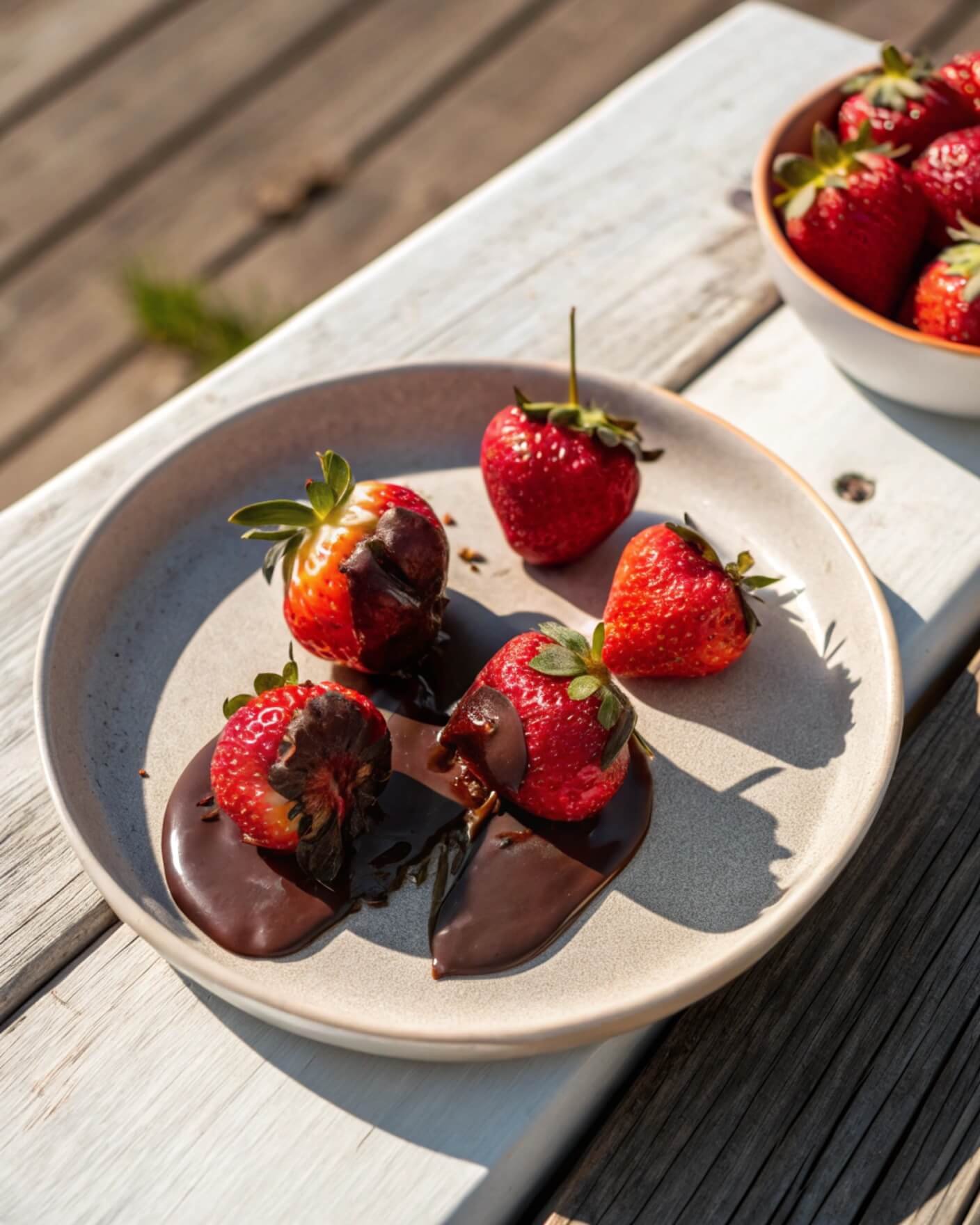 These strawberries are soft, juicy, and filled with melted chocolate for a simple but elegant camping dessert.