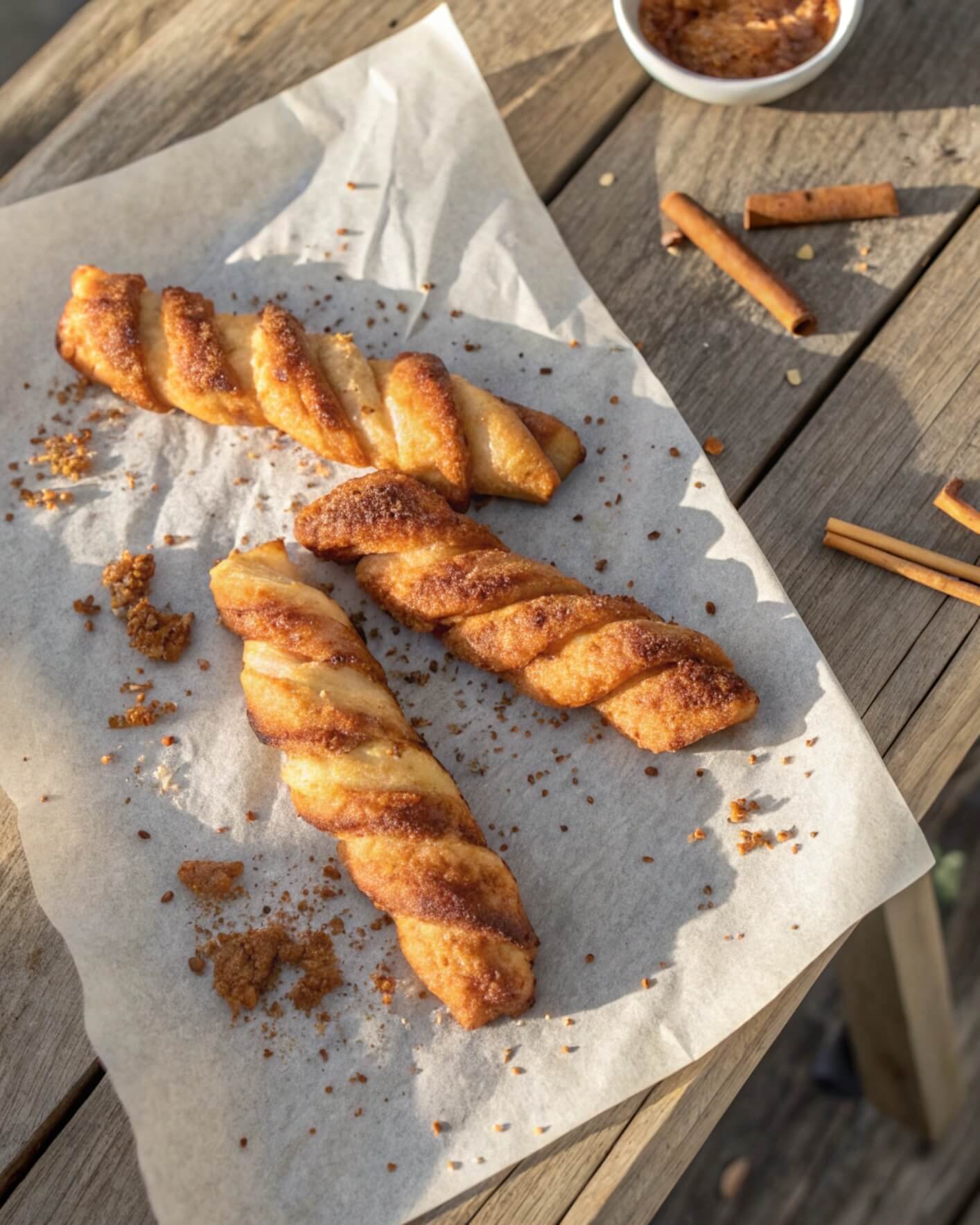 These twists are flaky, buttery, and coated in sweet cinnamon sugar. The outside gets lightly crisp while the inside stays soft.