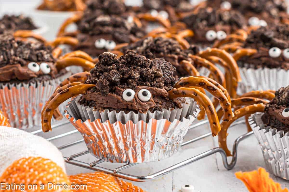 These adorable spider cupcakes are simple enough for kids to help make! Decorated with licorice legs and candy eyes, they’re spooky, sweet, and sure to steal the show at your Halloween celebration.