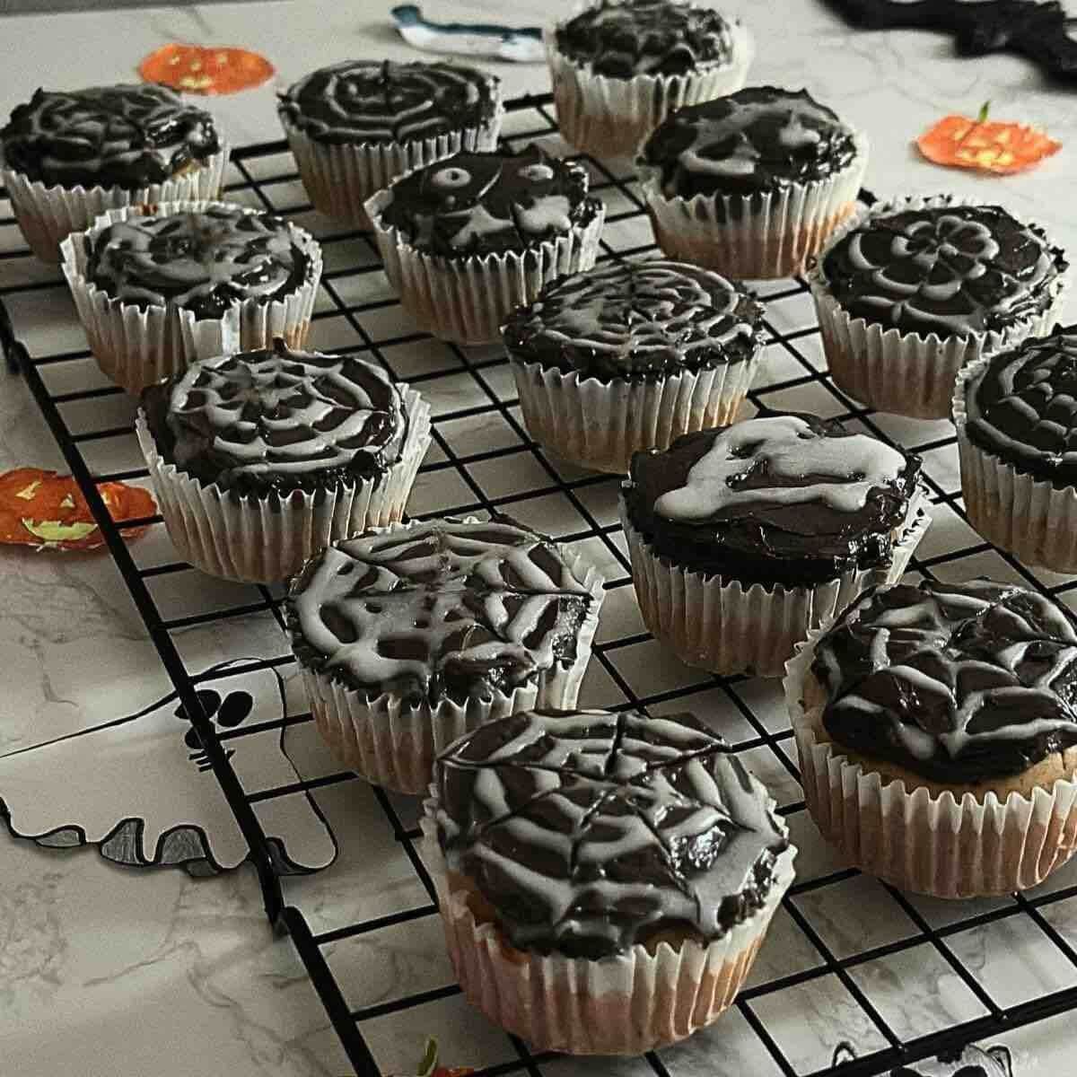 Moist chocolate cupcakes topped with a web of white frosting make the perfect eerie centerpiece for your party. They’re easy to decorate and look beautifully spooky — no baking skills required!