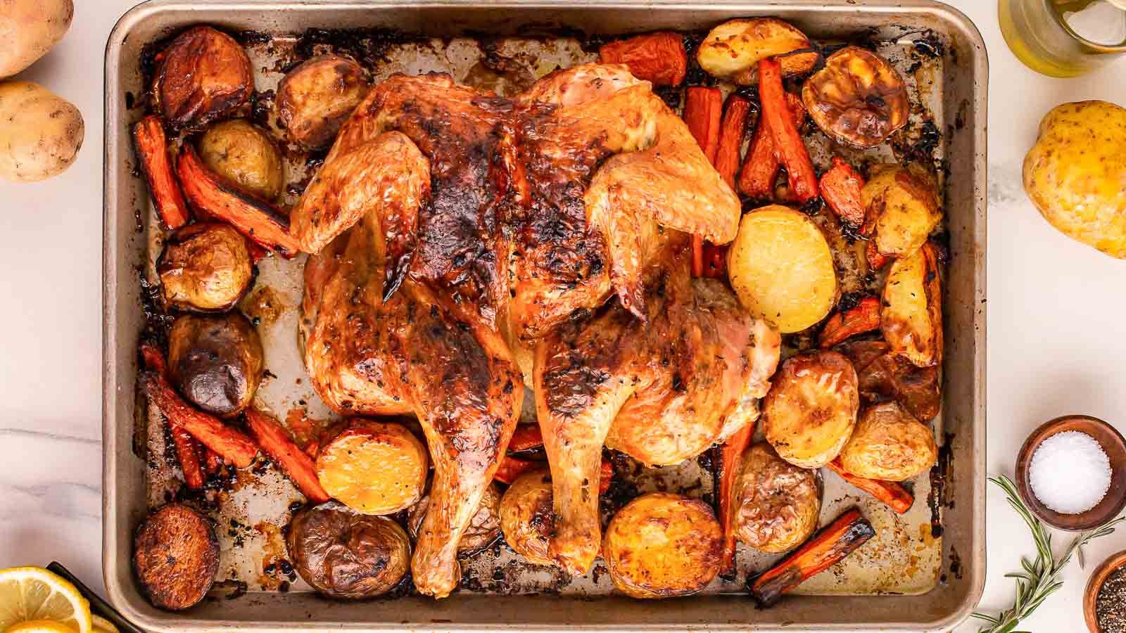 4. Spatchcock Chicken with Roasted Veggies – A One-Pan Wonder