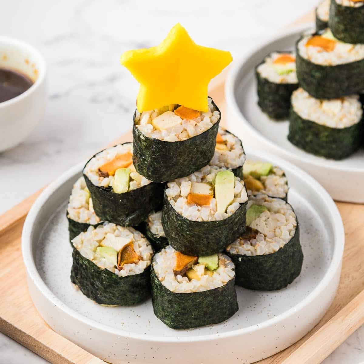 7. EASY Christmas Sushi Roll (Christmas Tree or Platter) – The Fruity Jem