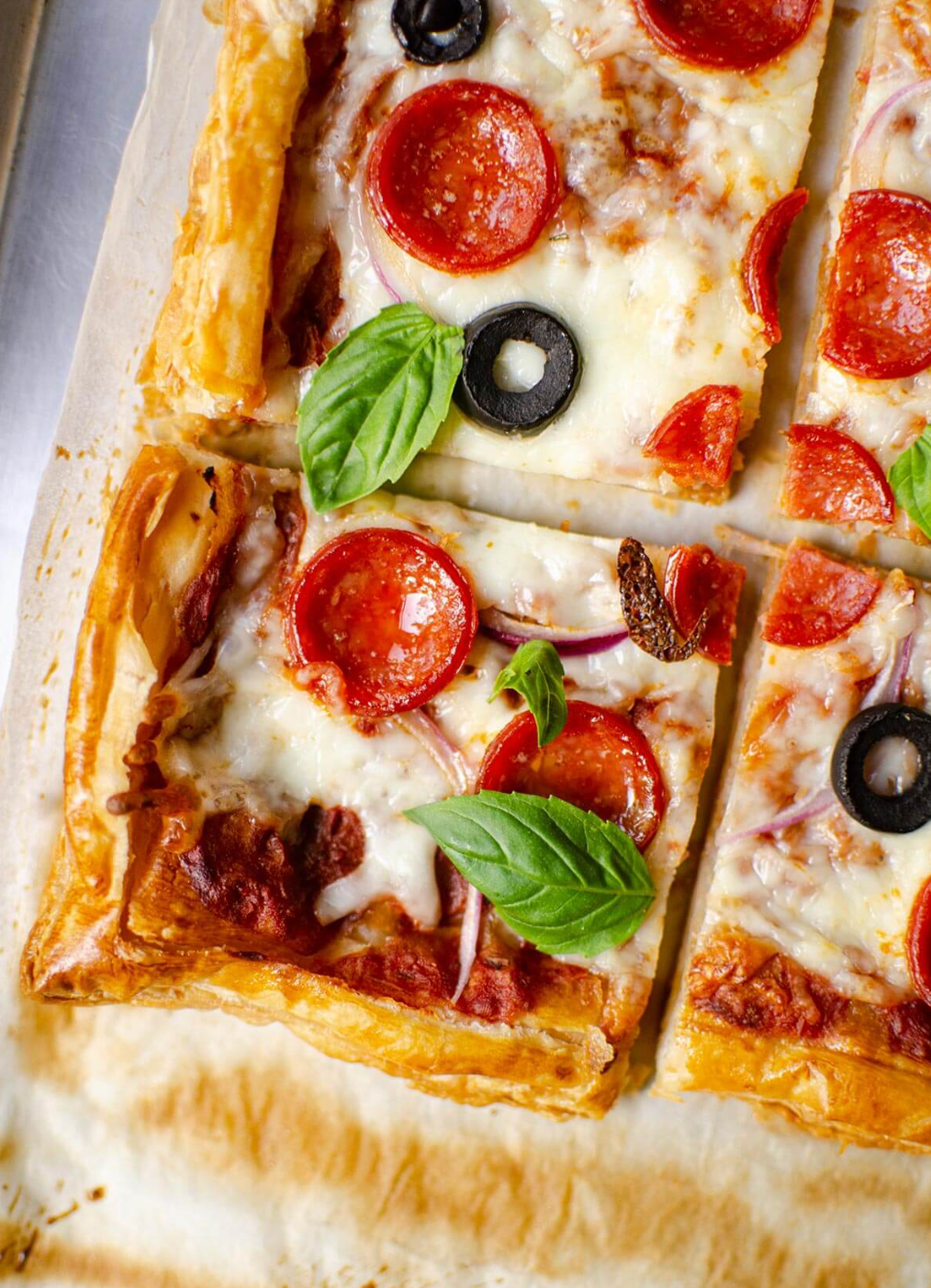 The whole family will love this easy puff pastry pizza, personalized with your favorite toppings!