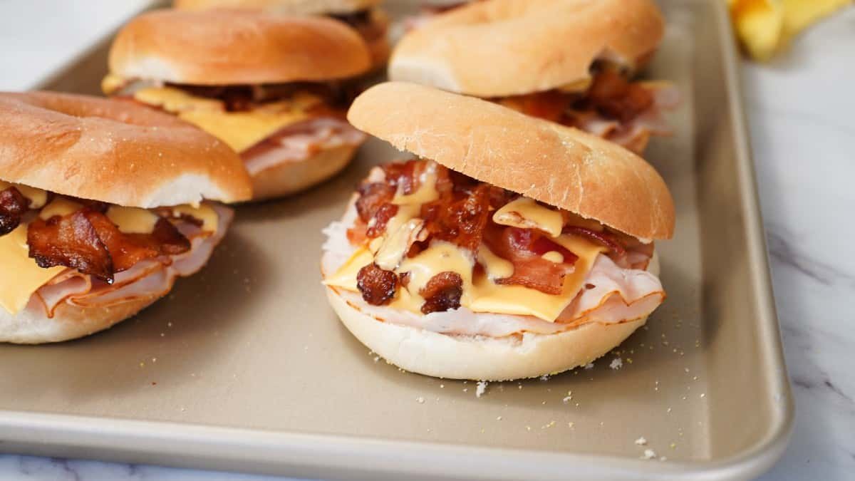You’ll need bagels, deli Turkey, American Cheese, bacon, and a drizzle of honey mustard dressing. This is budget-friendly, preferably high in protein, and most importantly comes together within 25 minutes. What else can be more exciting?