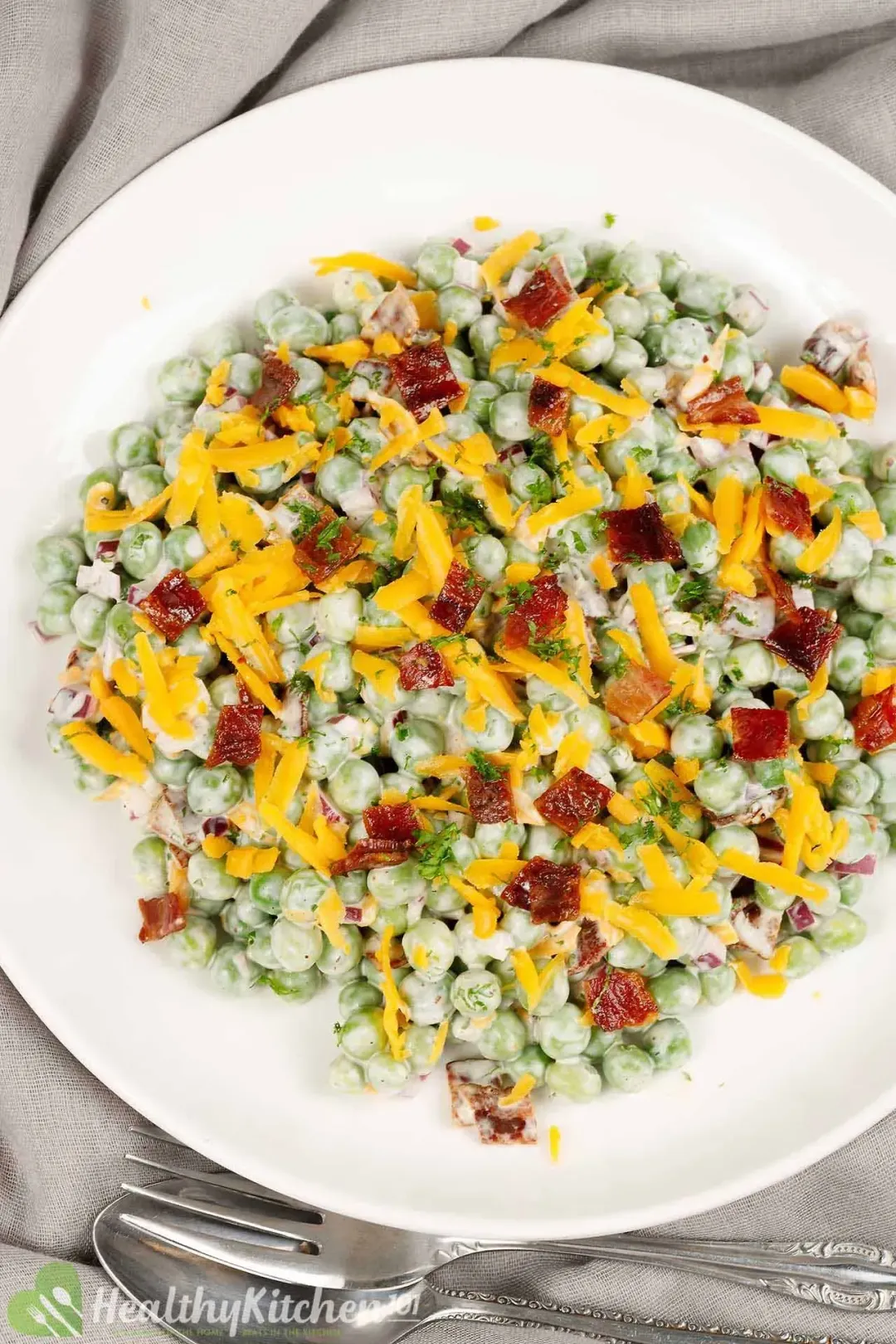 Take a break and try this popular and classic Southern pea salad recipe that pulls together in just 15 minutes. The easy pea salad features green peas, onion, bacon, and creamy cheddar cheese.