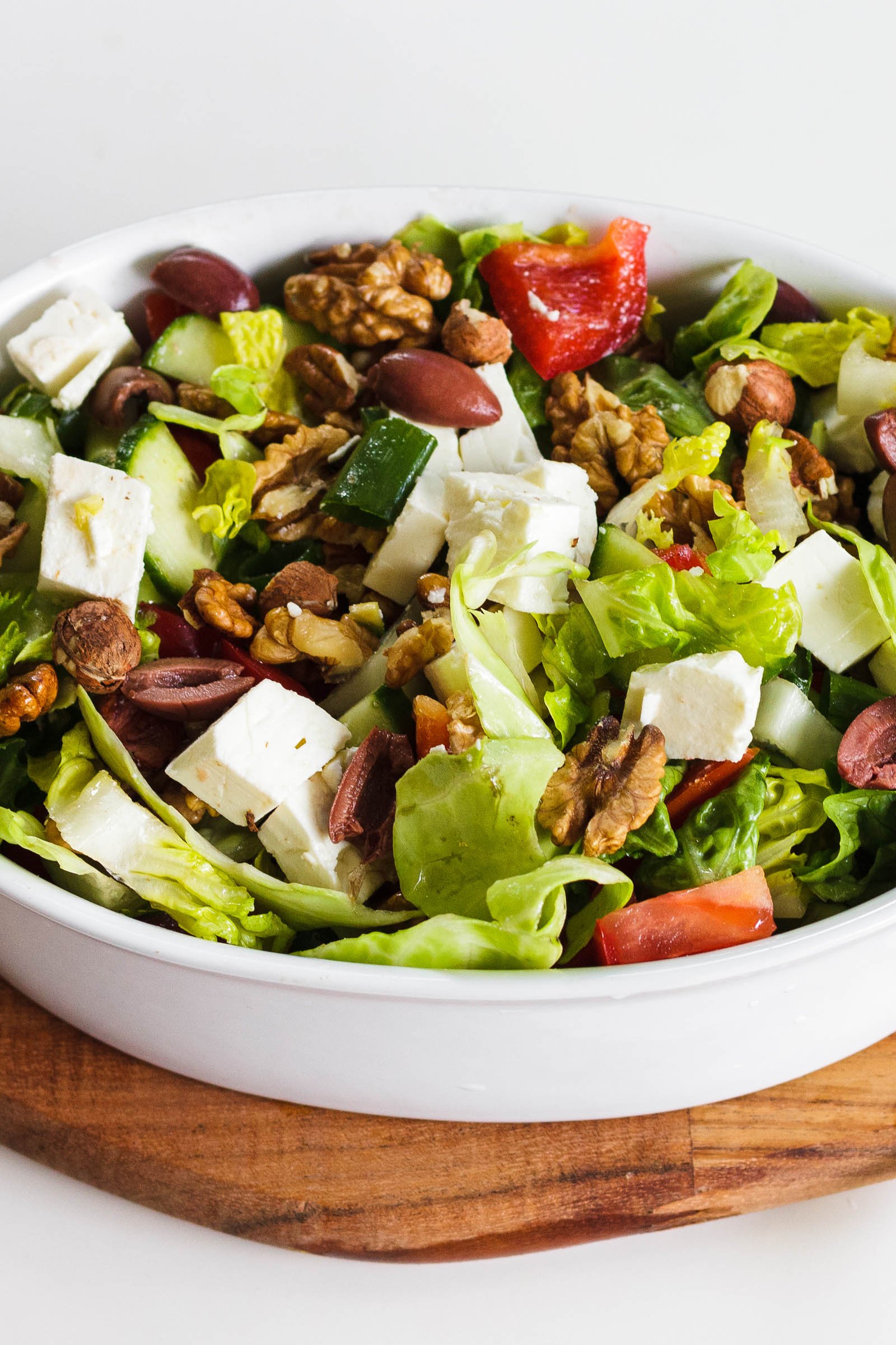 This simple gluten-free Greek salad delivers exactly what your body asks for nourishment. This salad is all about playing around with food, quantities, and ingredients of your choice.