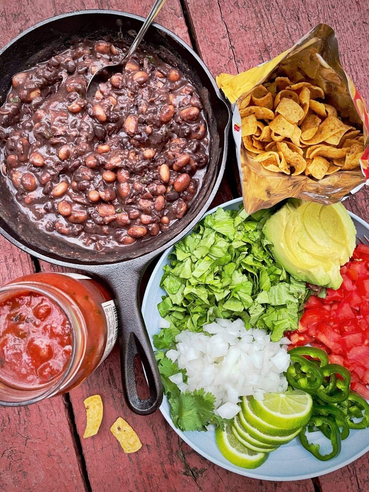 Looking for something quick, easy, and customizable, here are Vegan Walking Tacos (Frito pie) which are crowd favorites. Crunchy corn chips pack fresh veggies and are smothered with chili beans.