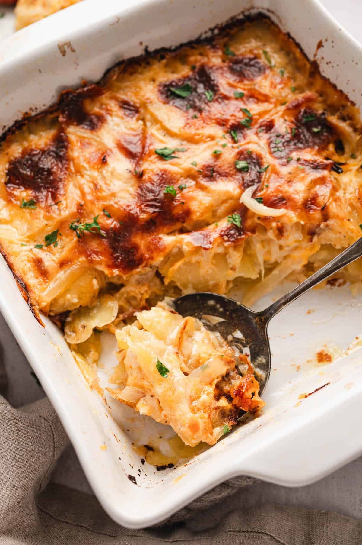 No more bland bites – these Cheesy Scalloped Potatoes bring the FLAVOR with two kinds of cheese, ample seasoning and a hint of garlic.