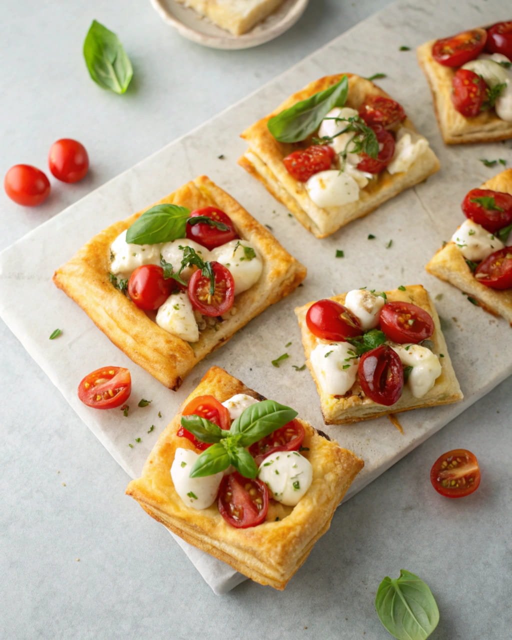 Mini caprese puff pastry squares are flaky, cheesy, and bursting with fresh spring flavor. Juicy tomatoes and mozzarella melt into golden pastry for an appetizer that feels elevated but is easy to prepare. These are ideal for spring parties and brunch spreads.