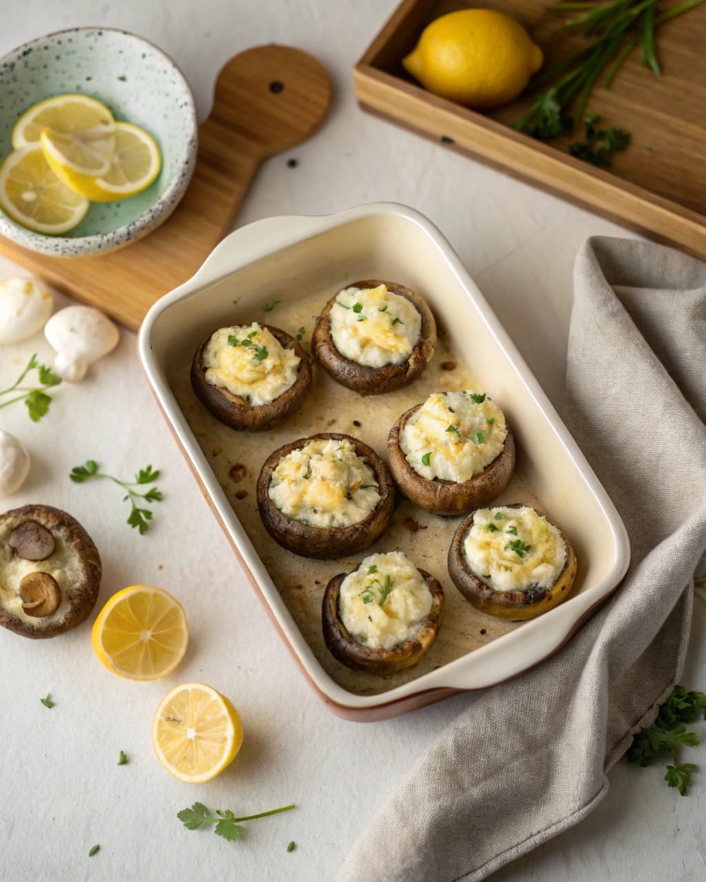 These baked lemon ricotta stuffed mushrooms are creamy, tangy, and full of spring flavor. The lemon brightens the rich filling while mushrooms add a savory base. They’re a great vegetarian option for spring parties and potlucks.