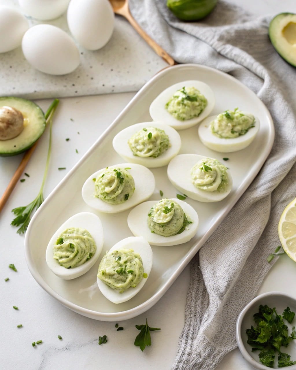 Creamy avocado deviled eggs put a fresh spring twist on a classic appetizer. The avocado adds richness while keeping the filling light and smooth. These eggs are a reliable favorite for potlucks, picnics, and spring celebrations.