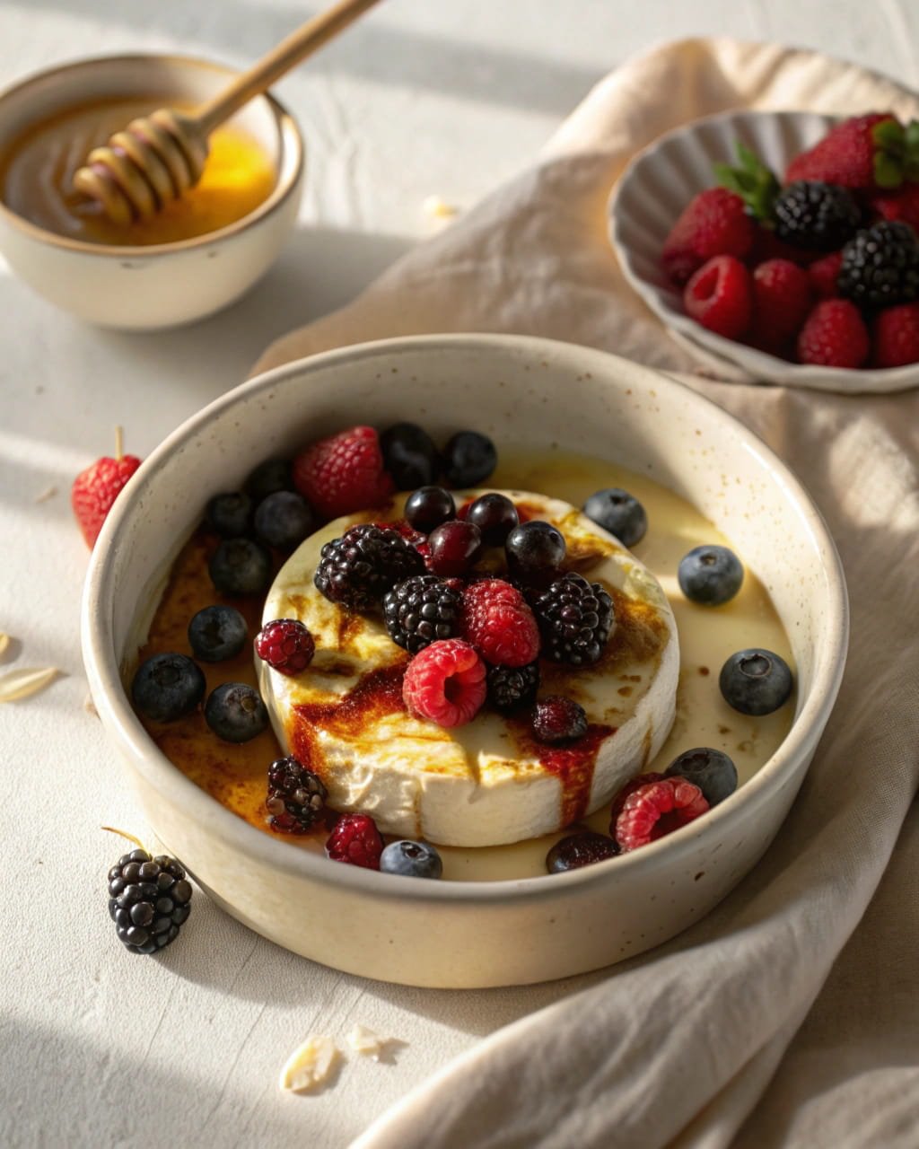 Baked brie with honey and spring berries is warm, creamy, and effortlessly elegant. The soft cheese pairs beautifully with sweet berries and a drizzle of honey. This appetizer works well for brunches, showers, and relaxed spring parties.