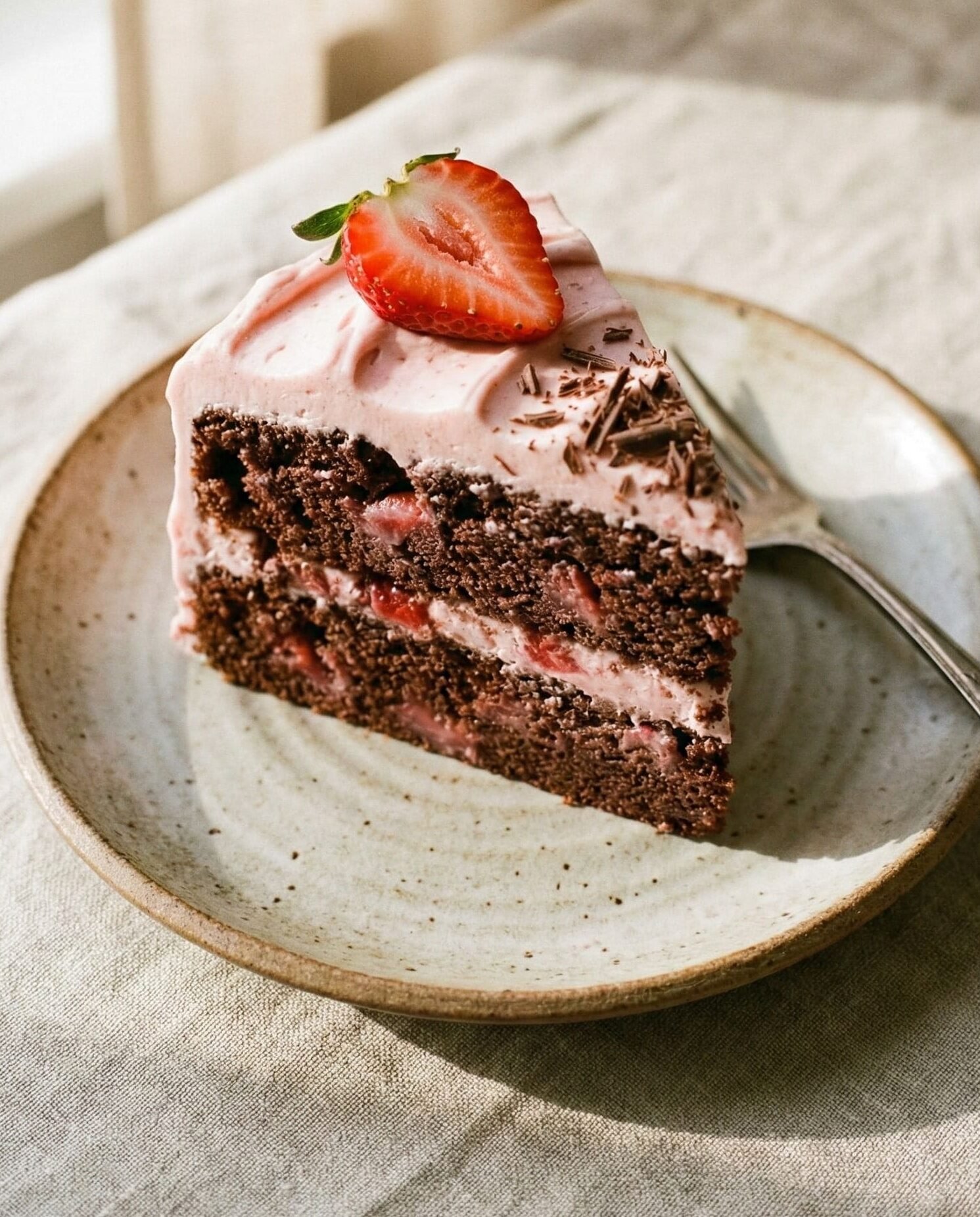 7. Fluffy Chocolate Strawberry Valentine Cake