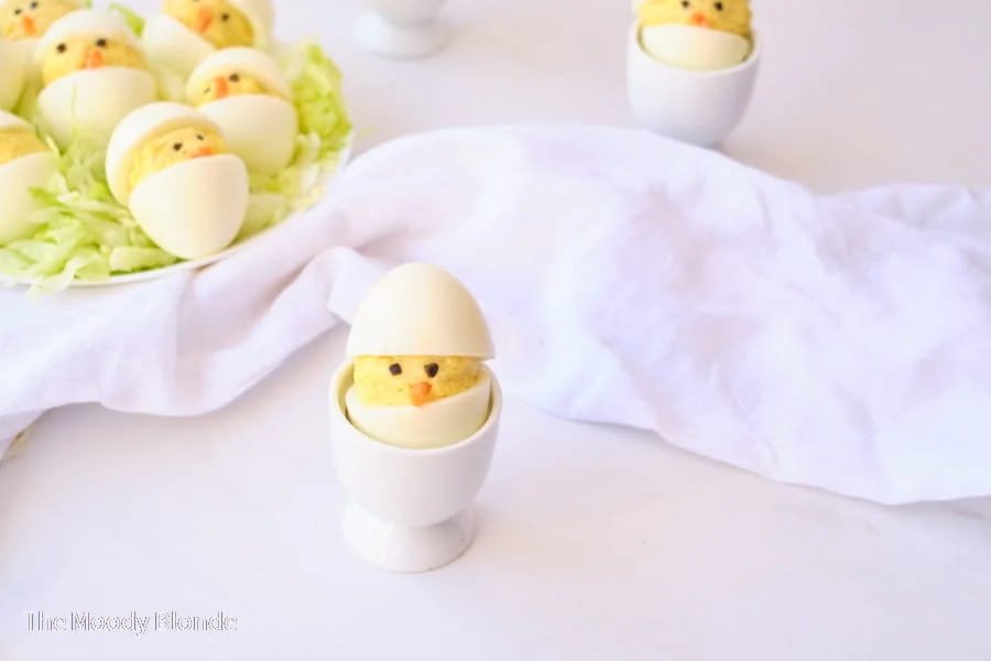 Easter Chick Deviled Eggs are the perfect way to use up those colored eggs this year! The cool thing about them is how simple they are to put together. They make a festive addition to any Easter brunch or dinner.