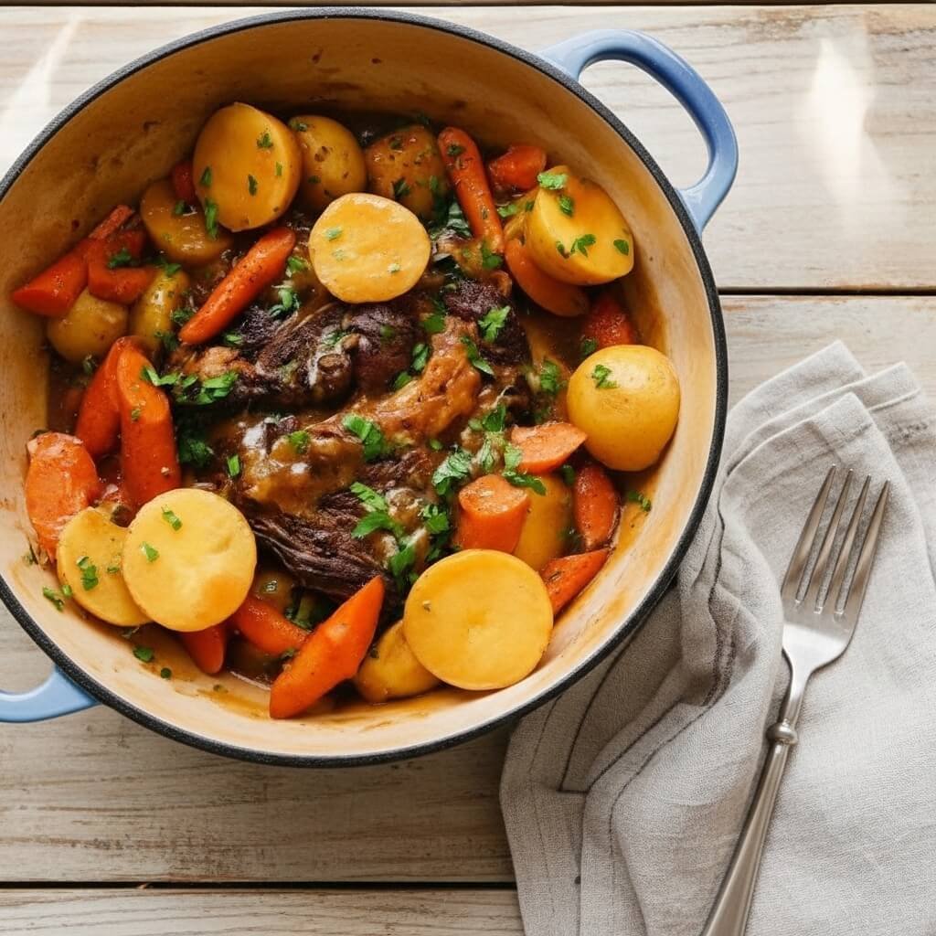 Classic Dutch Oven Pot Roast with Tender Beef, Carrots & Potatoes