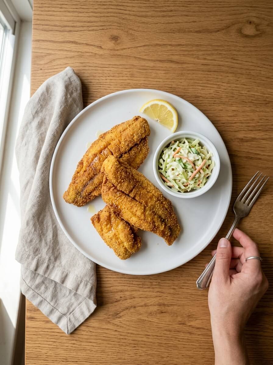 I usually make this when I want something hearty but still simple enough for a weeknight dinner. The creamy, slightly tangy coleslaw balances everything out perfectly, cutting through the richness of the fried catfish.